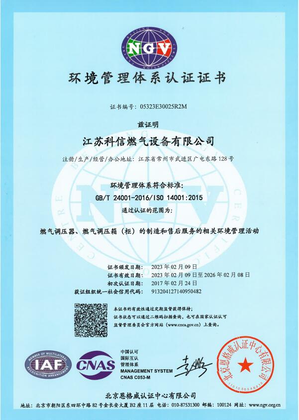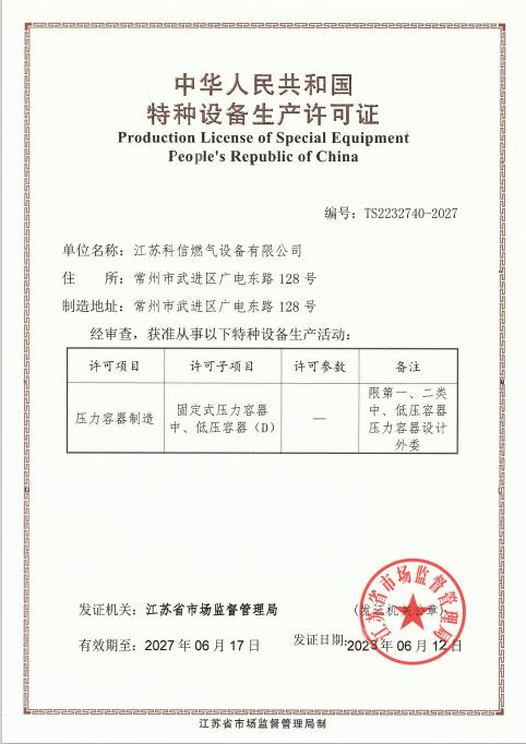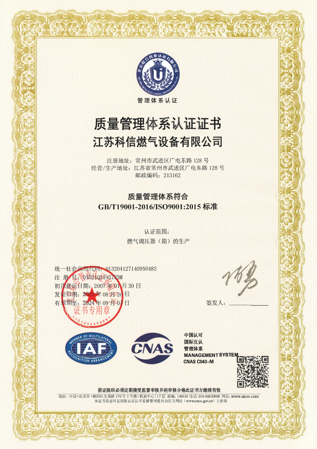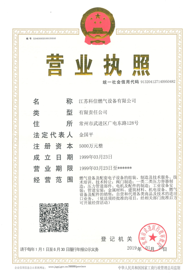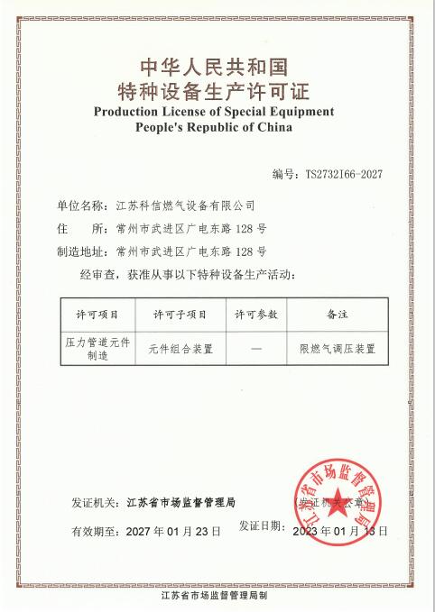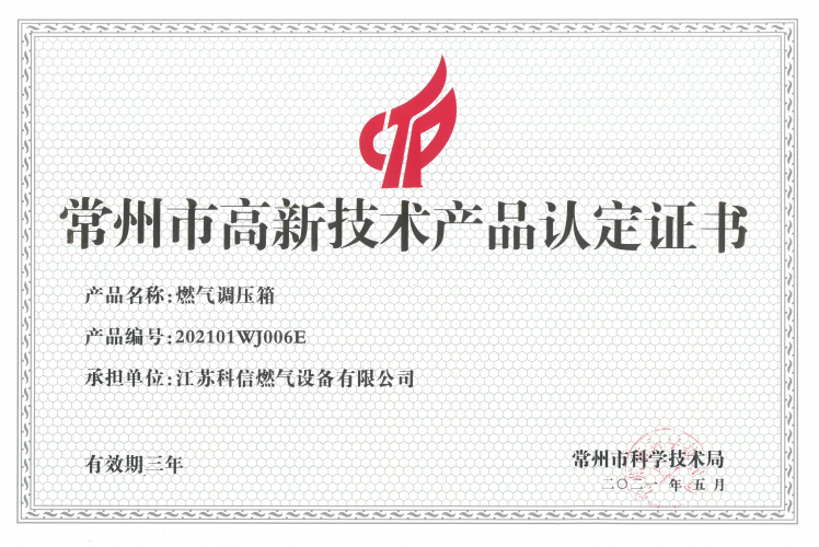 江蘇科信燃氣設備有限公司成立于1999年3月,建廠伊始,公司名稱為“常州市科信燃氣設備有限公司”,為適應公司持續(xù)發(fā)展的需求,于2014年正式更名為“江蘇科信燃氣設備有限公司”。自公司成立以來,科信一如既往專注于城市燃氣管網(wǎng)的配套建設和發(fā)展提供調(diào)壓設備及研究開發(fā)相關產(chǎn)品。